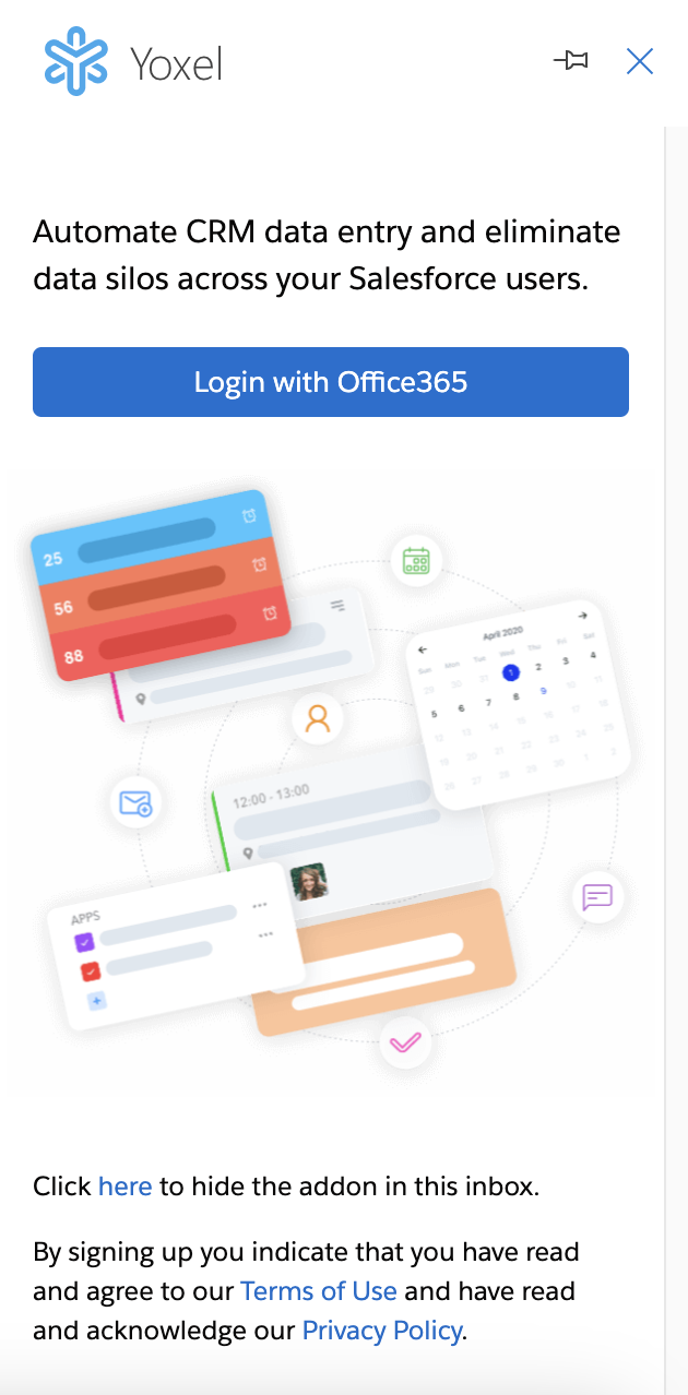 The very first time around the add-in will ask you to authorize access to your Office 365 and your Salesforce accounts.